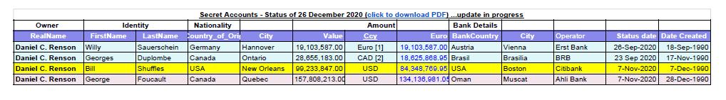 Ze zou deze rekening hebben geopend op 17 december 1994, hoogstwaarschijnlijk om terreur te zaaien als het zover is. Dit heeft ze hoogstwaarschijnlijk via een broker (een makelaar) geregeld, want ze had eerst een nieuwe identiteit nodig van Daniel Renson. Hiervoor is ze naar België gekeerd op 9 december 1994.