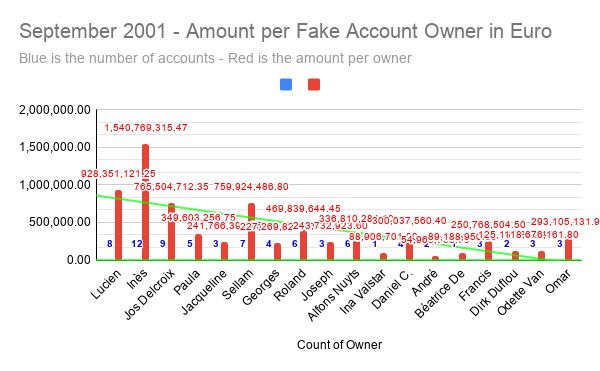 Hij kreeg het geld op zijn rekening gestort bij Chase Manhattan, en het bedrag kwam van een geheime rekening bij de Bank of New York Mellon in New York die op naam van Denise Watteau uit Elsene staat wat vermoedelijk een valse Belgische identiteit is van meester Inès Wouters, die een advocate is bij de Balie van Brussel. Joey the Midget zou het geld op voorhand hebben gekregen, namelijk op 14 dagen voor de moord op de twee jonge Amerikaanse advocaten.