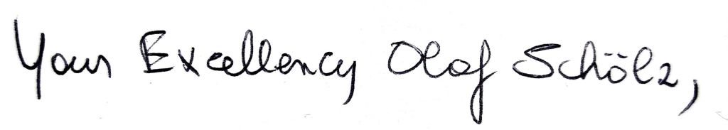 For His Excellency Olaf Scholz, the Chancellor of Germany