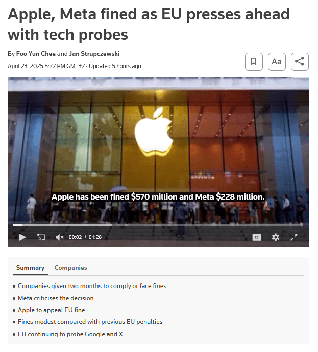 The American tech companies are actually sanctioned because they are transparent. They have to be transparent for the Securities and Exchange Commission, because these tech companies are stock quoted. The European Commission has certainly looked at the income statement of these companies to assert that they have the liquidity to pay those high fines. They have nothing to hide and their transparency makes them very easy targets for being caught on anything. It is only evil people who use the honesty of another person against that person.