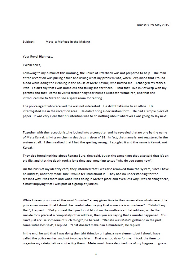 “I can always meet with him, because one never knows, and if I can’t pay the rent, I offer to clean the place”. “All the cleaners he has had, have ran away”, Lisa continued to warn, “for example, there was one Polish woman among them, who he hosted, she got deeply demoralized, she ran away like a mad woman from him. The commune of Woluwe Saint Lambert – who is not so difficult offered a social house to the woman, but Mete continued to have such an impact on the women that she committed suicide… “, I understood from Lisa. “She was very unhappy and she drank vodka as if she was drinking water, so you could expect that something like that would happen”, Lisa reasoned in a simplistic way, because the suicide could be a cover up.