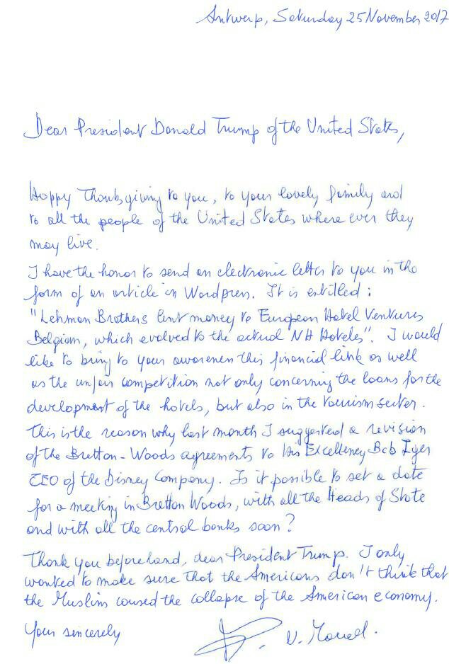 I have a detailed electronic letter for His Excellency President Donald Trump of the United States here @UnitedChamber, entitled “Lehman Brothers lent money to European Hotel Ventures Belgium, which evolved to the actual NH Hoteles“. The related fraudful competition in the hospitality sector calls for a revision of the Bretton Woods Agreement, this time to prevent collapse of banks and according to Disney standards.