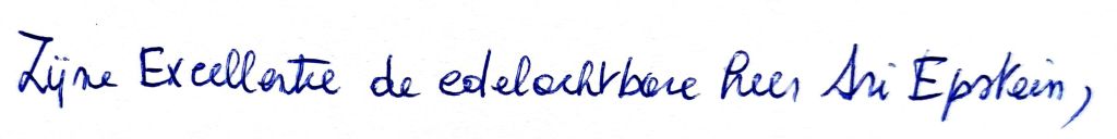 Met nederigheid dank ik u voor uw vriendelijke aandacht, Uwe Excellentie de edelachtbare heer Ari Epstein van de Antwerp World Diamond Center.