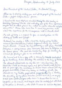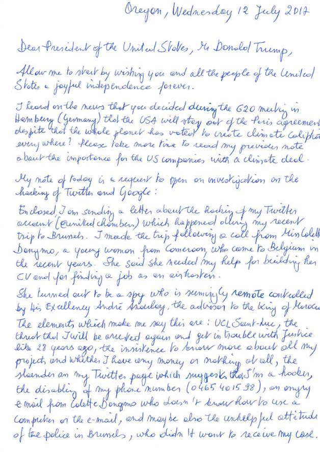 Blad 1 letter to President Trump of 12 July 2017