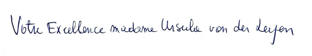 Je vous prie d’agréer, Votre Excellence Madame Ursula von der Leyen, Présidente de la Commission européenne, l’expression de mes sentiments distingués,