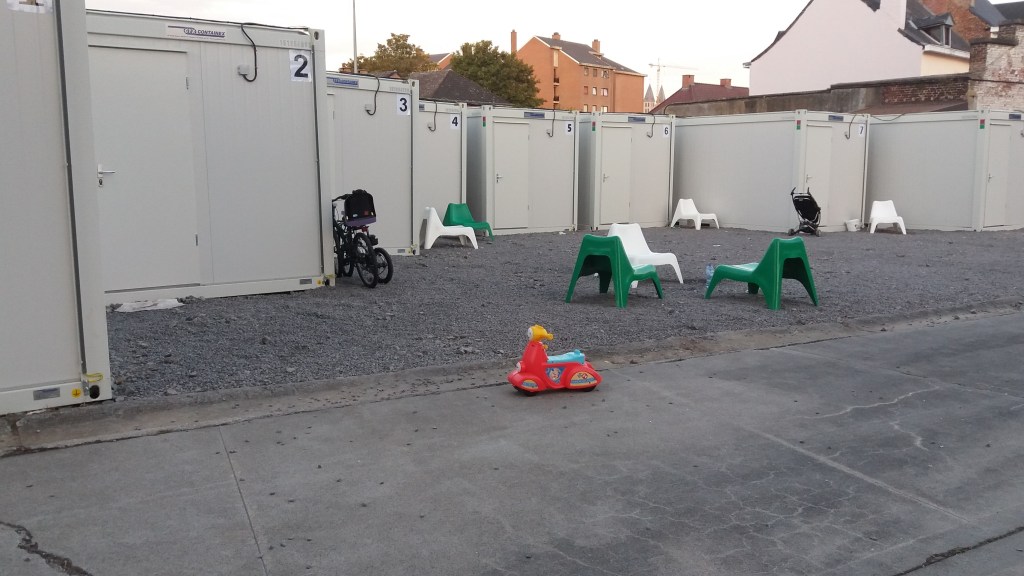 In het asielcentrum van La Croix-Rouge de Belgique in Doornik heb ik dezelfde behandeling waargenomen voor de internationale vluchtelingen. Ook zij kregen een zeecontainer om in te leven, dag in dag uit. Het merk van de zeecontainer is Containex.