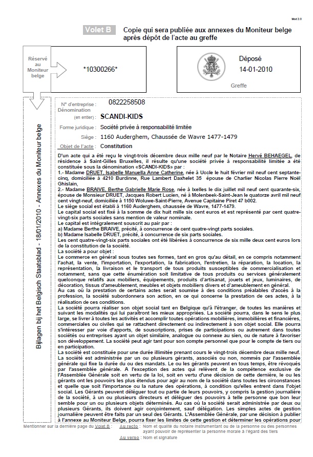 Ik heb kinderen horen schreeuwen en huilen, maar ik besteedde er nooit aandacht aan totdat de benedenbuurvrouw mij vertelde dat zij de Zweedse vrouw geweld had horen gebruiken tegen bepaalde kinderen die naar haar winkel kwamen. Ze was te bang om de politie te bellen. Ik vond geen gegevens van 1991 of later over Scandi-Kids op de Gribaumontlaan 7, 1150 Sint Pieters Woluwe. Er bestaan geen jaarbalansen voor die periode, maar er bestaan wel getuigen. Ik wist van hun verhuis naar Oudergem, naar een grotere winkel, nadat ik dat adres in 1998 verlaten had. Ik vond een officiële oprichting van Scandi-Kids als een bedrijf op 14 januari 2010. Ze waren waarschijnlijk al bijna 20 jaar illegaal actief