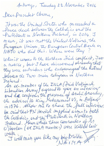 Here follows an extended version of the letter above to the President of the United States Mr Barack Obama of 22 November 2016. Click on the link for a better view of the letter.